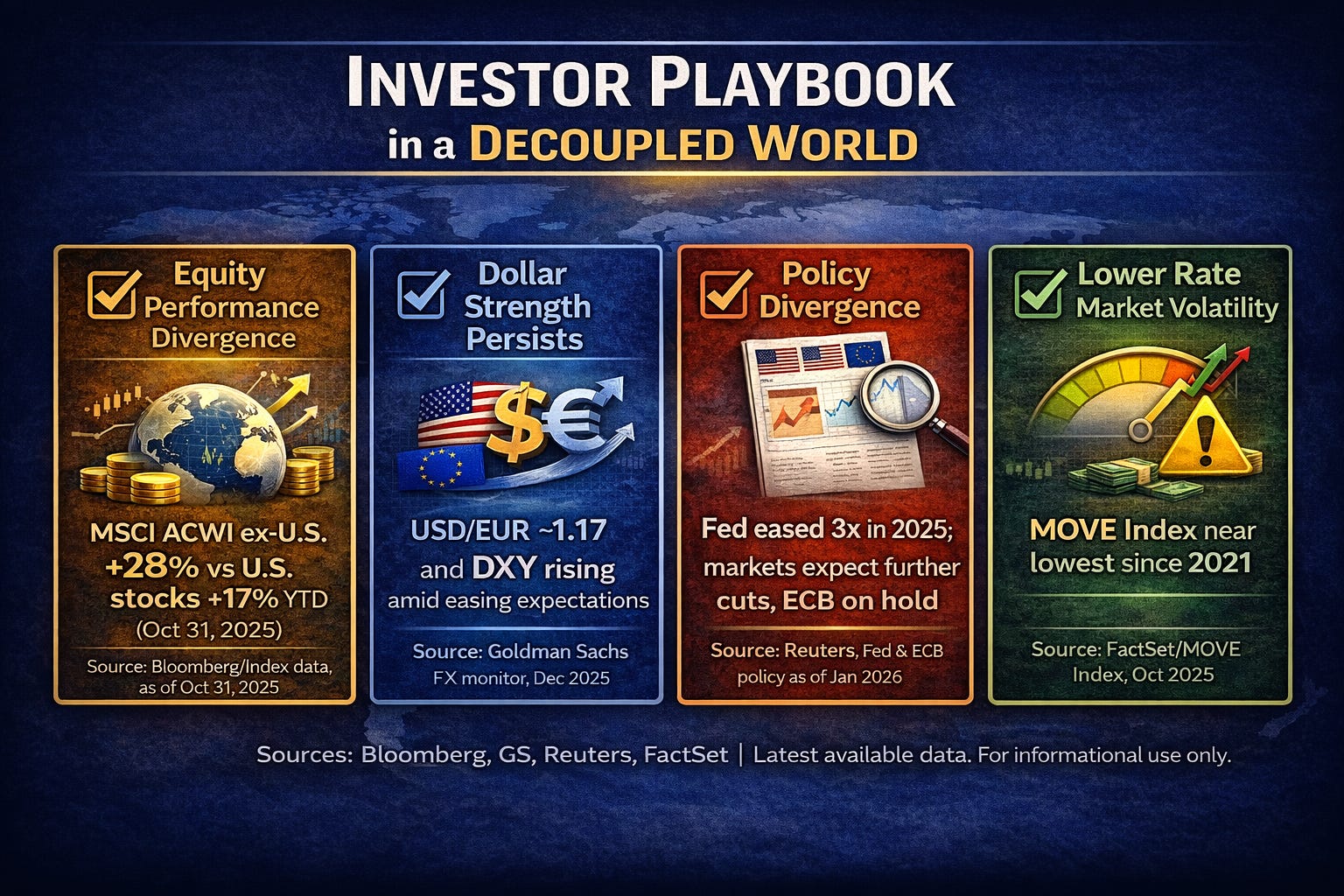 The global economy is not fully detached from U.S. monetary policy, but it is no longer governed by it alone. Trade, finance, and capital markets remain deeply interconnected. What has changed is the assumption that the Fed dictates the timing and direction of every cycle. For investors, that reality places a premium on global diversification, currency awareness, and close attention to regional fundamentals. The era of automatic synchronization appears to be fading, replaced by a more fragmented but nuanced global monetary order.