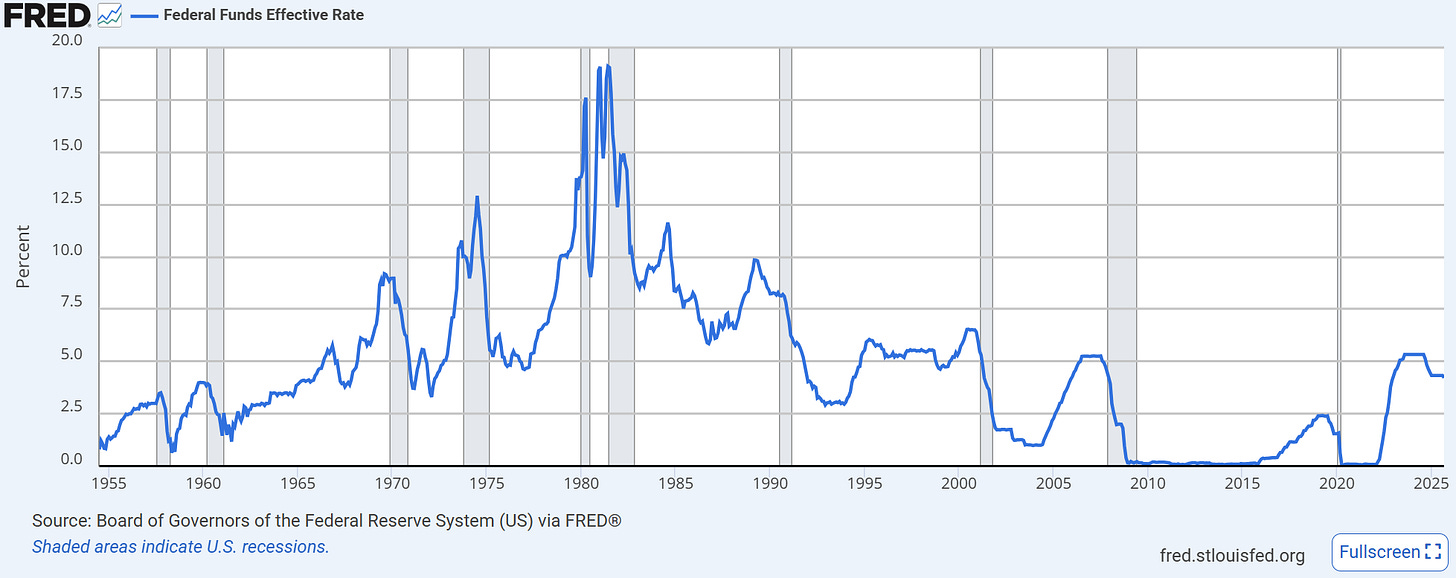 Chair Powell said it bluntly at the news conference: After roaring up in 2021, inflation has cooled off a bit but “remains somewhat elevated relative to our 2 percent longer-run goal.”³ Inflation is running high — but coming down. Recent actions by the Fed represent a balancing act. Policymakers are no longer as jumpy about 3% inflation as they were a year ago. However, many Fed officials see the risk of a cooling labor market as more salient than a dab of excess inflation. Powell and others stressed that policy is malleable and data-dependent, explaining that they are cutting rates now in response to softening in the job market (and price spikes driven by tariffs that should dissipate). The clear message: the Fed isn’t dropping its 2% target, but it will be tolerant of a modest overshoot if that’s what it takes to avoid a recession.